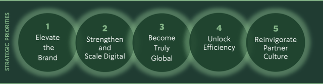 星巴克在舒尔茨回归执掌业务时制定了重塑战略(下图),从提升品牌声誉、数字能力和全球扩张这三个关键入手进行业务重整。整个战略的基础是承诺到2027财年节省30亿美元,带来显著的盈利增长、利润率扩张和股东价值创造。
