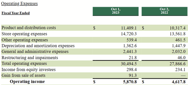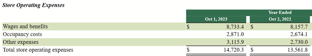 我们可以看一下2023年的运营成本分项。商店运营费用是第一大开支项,其次是生产和分销(下图)。