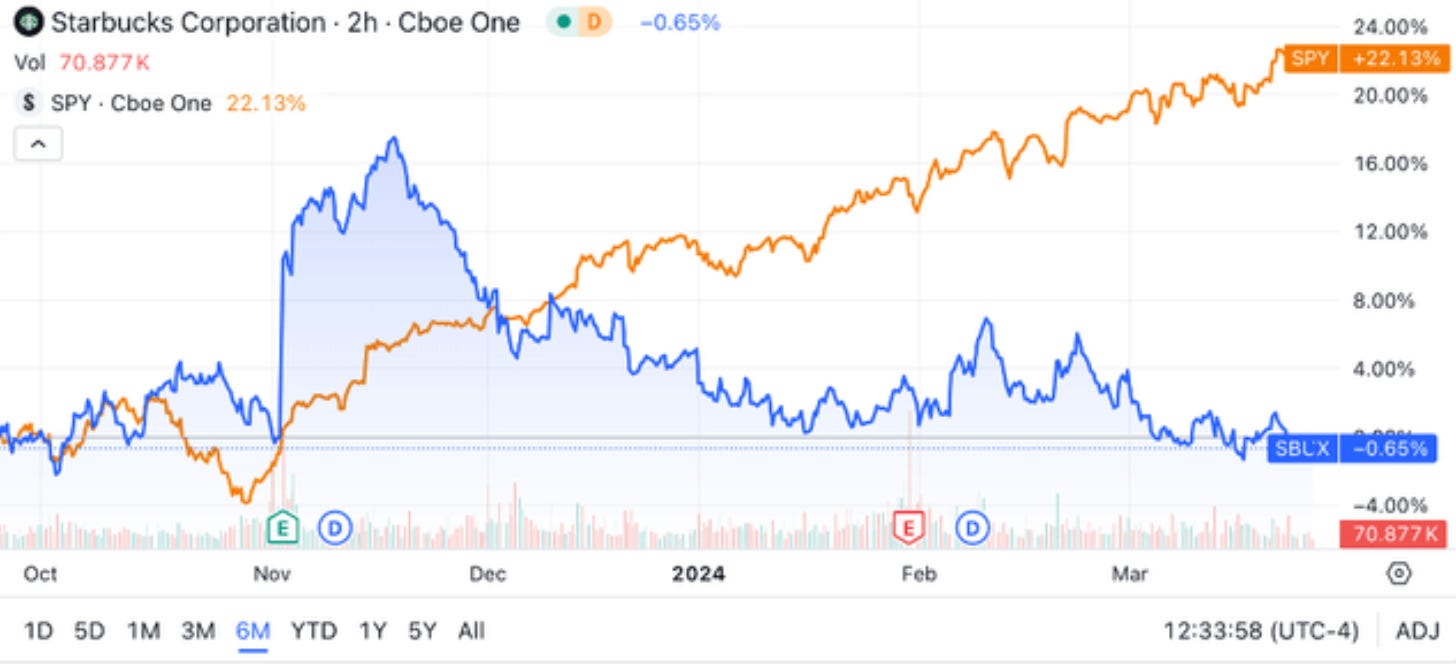 2010年投星巴克股票1万美元,现在值10万。未来还能持续这种回报吗?