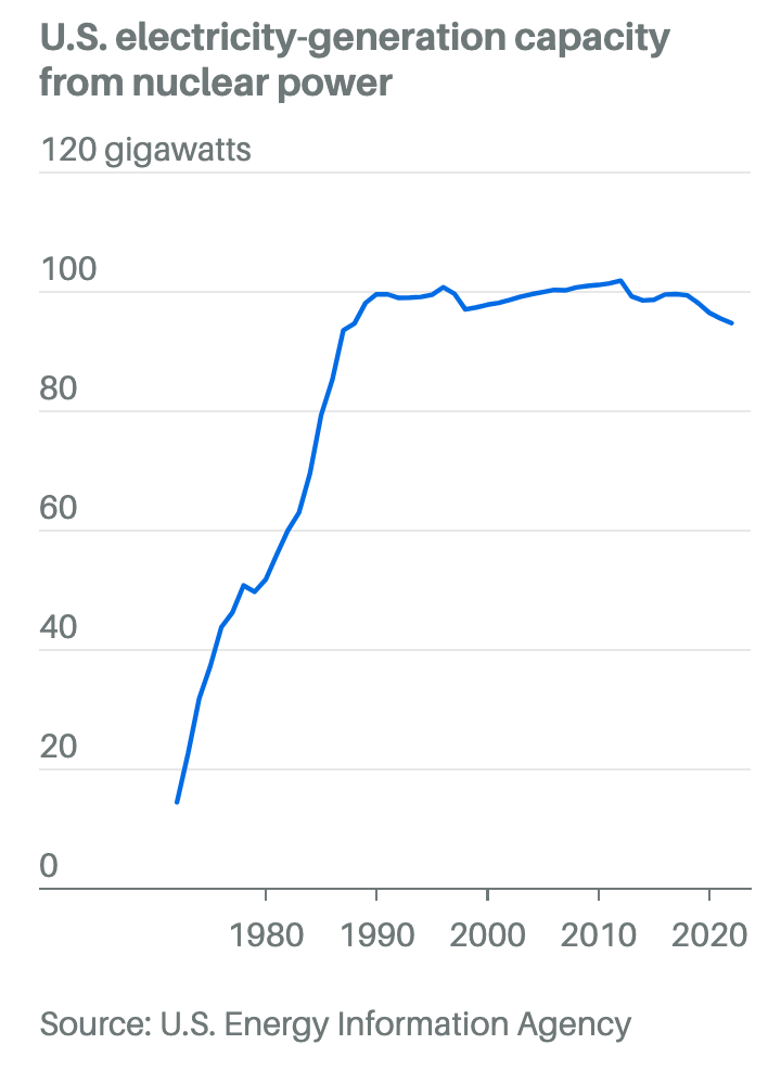 比尔-盖茨的核能创业公司TerraPower正在怀俄明州一座退役燃煤电厂的场地上准备建造一座新反应堆,政府融资超过20亿美元。两家由OpenAI创始人山姆-奥特曼支持的公司正在测试新的核技术。拜登政府宣布到2050年要将全美核能力增加两倍。